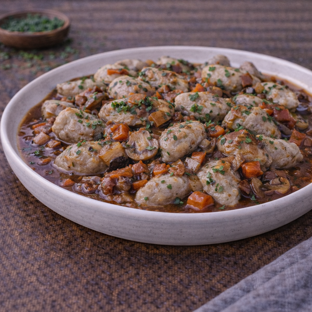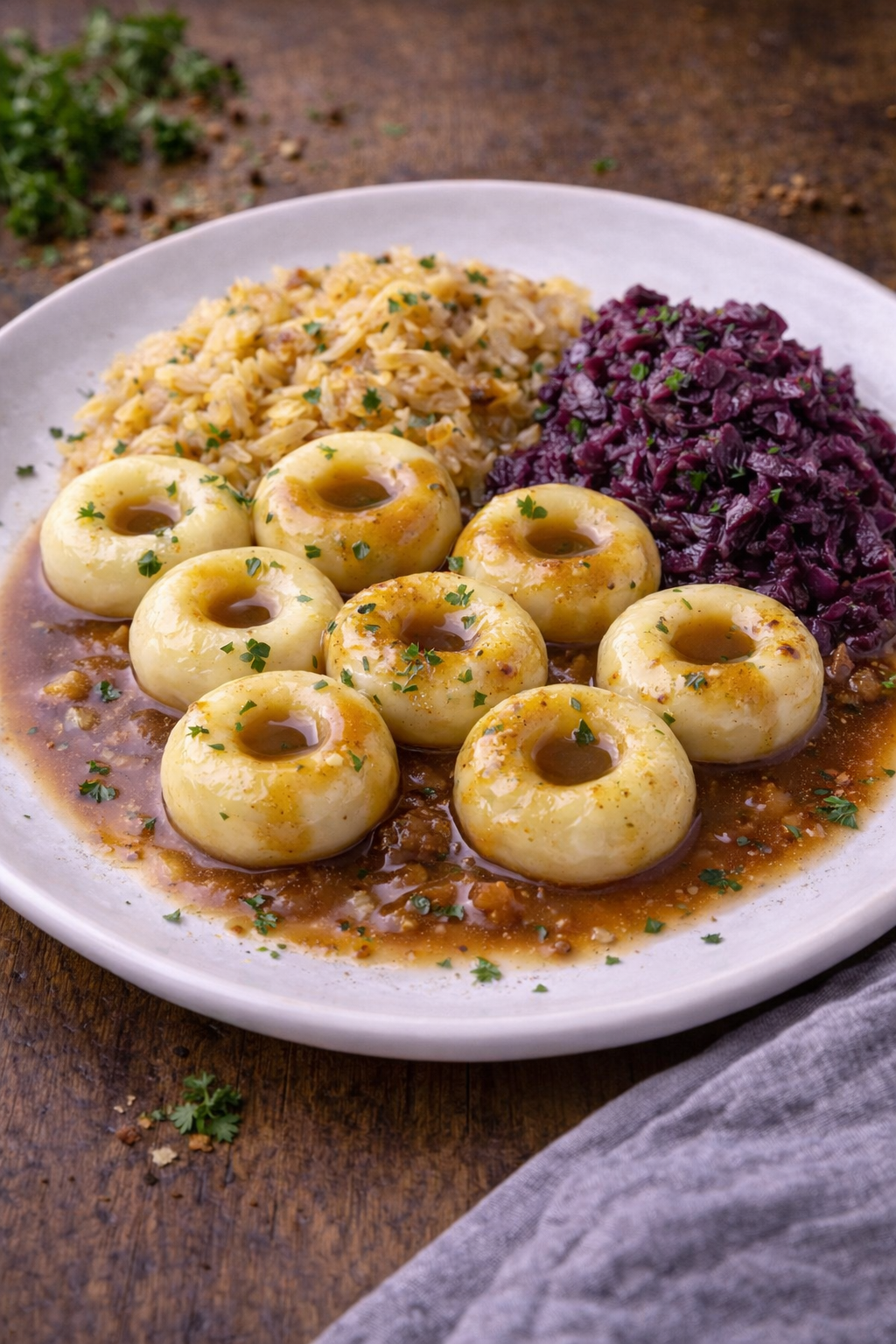 Do wyboru kluski śląskie lub kopytka lub przecieraki